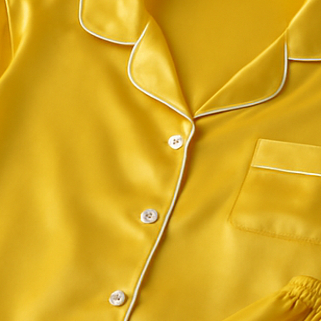 Onze pyjama’s zijn gemaakt van hoogwaardig satijn (polyester satijnweefsel) met een zijdeachtige glans. Zo geniet je van de luxe uitstraling van zijde, maar met de voordelen van een onderhoudsvriendelijk en duurzaam materiaal.